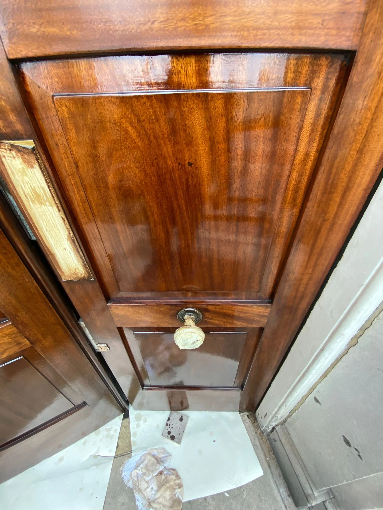 Finished by hand to a deep sheen, the doors have been brought back to life—rich, vibrant, and ready to welcome visitors for years to come.