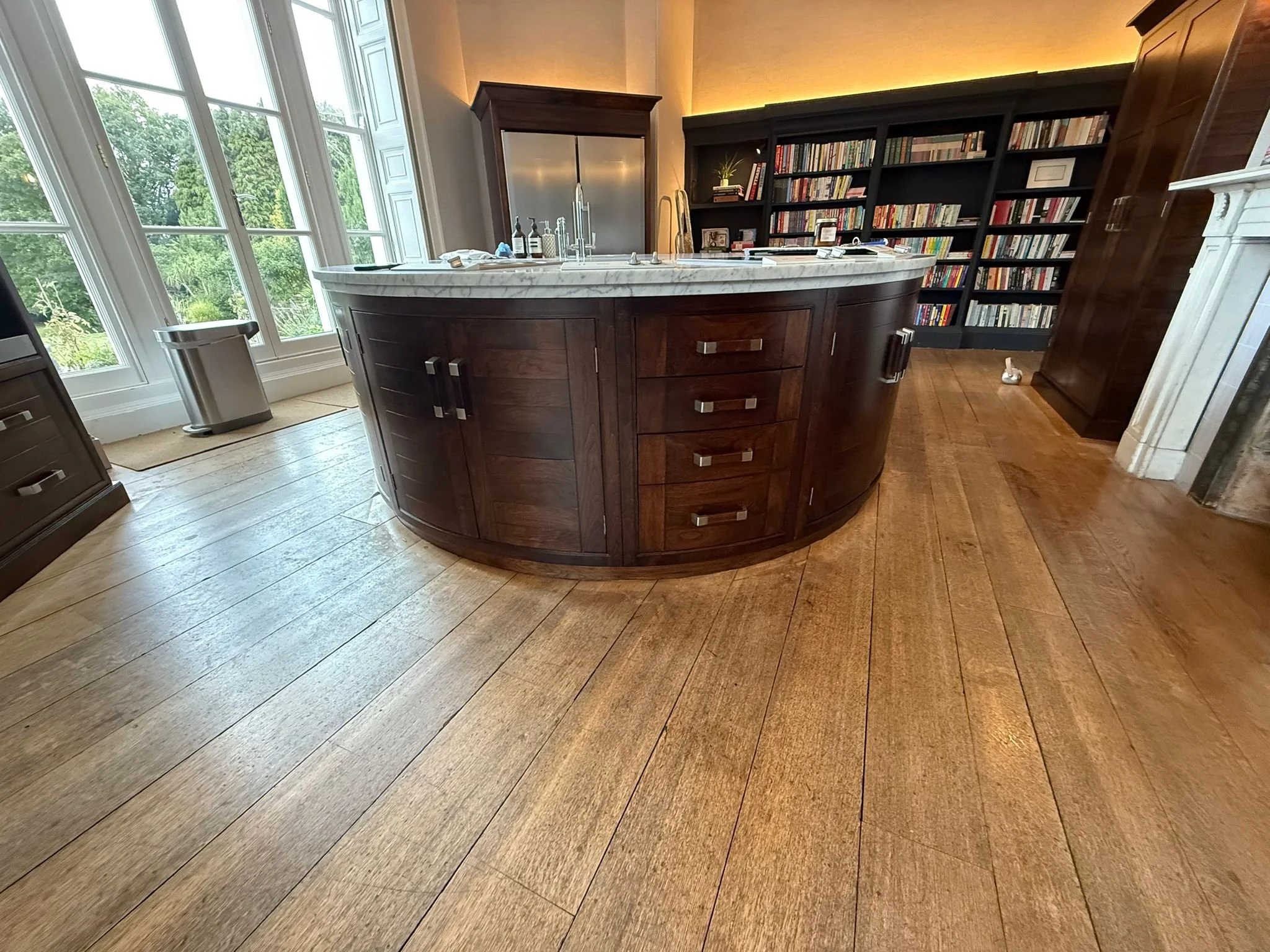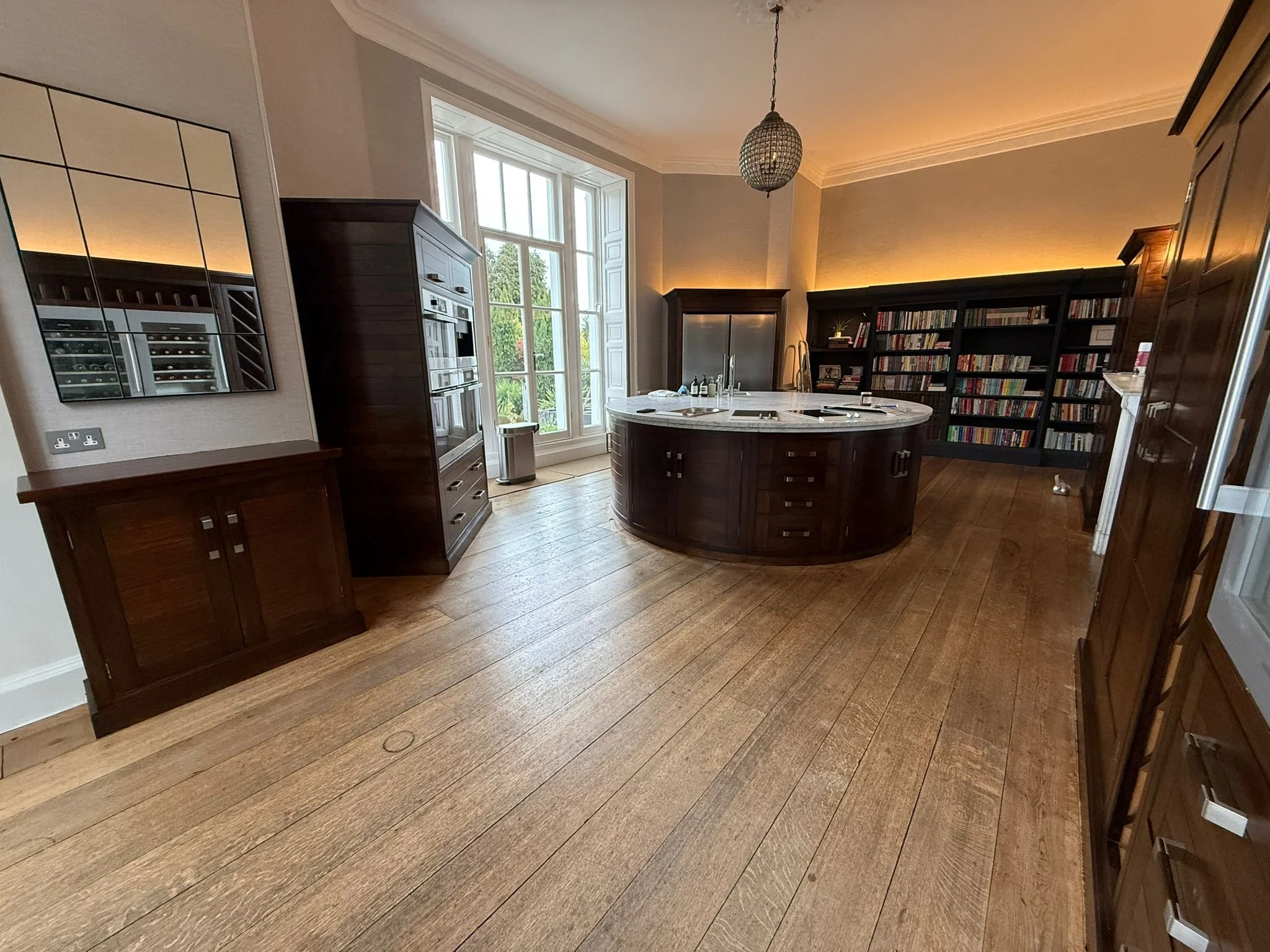 We were approached by Stephanie Hutchinson Interiors to work on a large walnut kitchen as part of one of her interior design projects. The space already had incredible bones — beautifully made cabinetry, rich walnut timber, and a timeless design — but over time, the finish had dulled and the natural warmth of the wood had faded. Our task was to restore the kitchen to its former glory and bring the walnut’s depth and richness back to life.